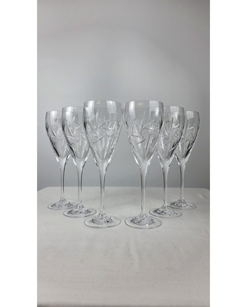Zestaw 6 kieliszków kryształowych Edit Glass do wina – szlif młynek Elegancki zestaw sześciu kieliszków do wina od Edit Glass to połączenie wyrafinowanej formy i rzemieślniczej precyzji. W Kotlinie Kłodzkiej – regionie, który od pokoleń słynie z mistrzów zdobnictwa szkła – każdy kieliszek powstaje w procesie ręcznego szlifowania i kwaszenia. Smukła, ciągnięta noga nadaje kieliszkom lekkości i subtelnej elegancji, a szlif młynek pięknie odbija światło, wydobywając naturalny blask kryształu. Cechy zestawu: Ilość: 6 kieliszków do wina Materiał: szkło kryształowe (24%pbo), ręcznie zdobione Technika zdobienia: szlif młynek + trawione w kwasie Wysokość kieliszka: 23,5 cm Średnica czarki: 7,5 cm Smukła, ciągnięta noga – elegancka forma i wygoda użytkowania Precyzyjne, ręczne wykonanie w Kotlinie Kłodzkiej Oryginalny produkt firmy Edit Glass Made in Poland
