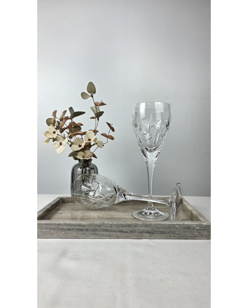 Zestaw 6 kieliszków kryształowych Edit Glass do wina – szlif młynek Elegancki zestaw sześciu kieliszków do wina od Edit Glass to połączenie wyrafinowanej formy i rzemieślniczej precyzji. W Kotlinie Kłodzkiej – regionie, który od pokoleń słynie z mistrzów zdobnictwa szkła – każdy kieliszek powstaje w procesie ręcznego szlifowania i kwaszenia. Smukła, ciągnięta noga nadaje kieliszkom lekkości i subtelnej elegancji, a szlif młynek pięknie odbija światło, wydobywając naturalny blask kryształu. Cechy zestawu: Ilość: 6 kieliszków do wina Materiał: szkło kryształowe (24%pbo), ręcznie zdobione Technika zdobienia: szlif młynek + trawione w kwasie Wysokość kieliszka: 22 cm Średnica czarki: 7 cm Smukła, ciągnięta noga – elegancka forma i wygoda użytkowania Precyzyjne, ręczne wykonanie w Kotlinie Kłodzkiej Oryginalny produkt firmy Edit Glass Made in Poland Zestaw idealny na uroczyste toasty, wesela, święta czy wyjątkowe okazje. Podkreśli rangę spotkań i sprawi, że serwowanie wina, prosecco czy win musujących stanie się prawdziwą celebracją.