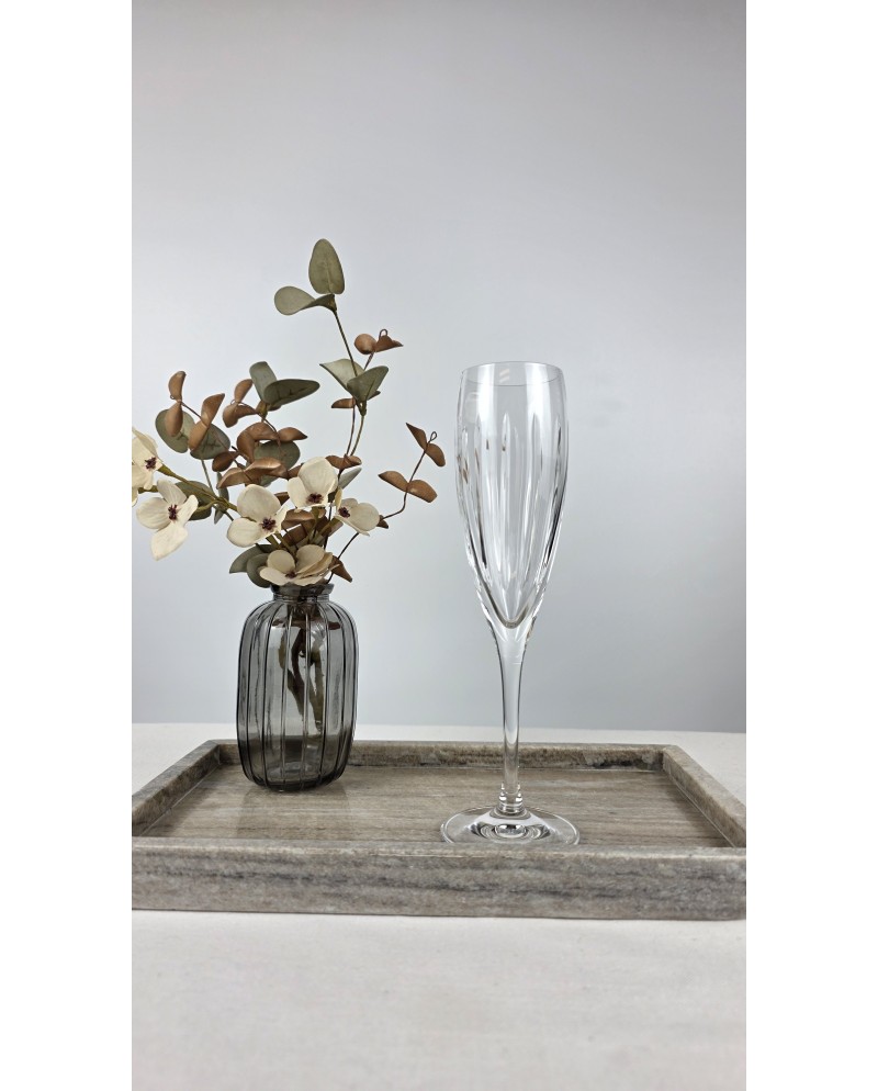 Zestaw 6 kieliszków kryształowych Edit Glass do szampana – szlif skyline Elegancki zestaw sześciu kieliszków do szampana od Edit Glass to połączenie wyrafinowanej formy i rzemieślniczej precyzji. W Kotlinie Kłodzkiej – regionie, który od pokoleń słynie z mistrzów zdobnictwa szkła – każdy kieliszek powstaje w procesie ręcznego szlifowania i kwaszenia. Smukła, ciągnięta noga nadaje kieliszkom lekkości i subtelnej elegancji, a szlif skyline pięknie odbija światło, wydobywając naturalny blask kryształu. Cechy zestawu: Ilość: 6 kieliszków do szampana Materiał: szkło kryształowe (24%pbo), ręcznie zdobione Technika zdobienia: szlif skyline + trawione w kwasie Wysokość kieliszka: 22,5 cm Średnica czarki: 5 cm Smukła, ciągnięta noga – elegancka forma i wygoda użytkowania Precyzyjne, ręczne wykonanie w Kotlinie Kłodzkiej Oryginalny produkt firmy Edit Glass Made in Poland Zestaw idealny na uroczyste toasty, wesela, święta czy wyjątkowe okazje. Podkreśli rangę spotkań i sprawi, że serwowanie szampana, prosecco czy win musujących stanie się prawdziwą celebracją.