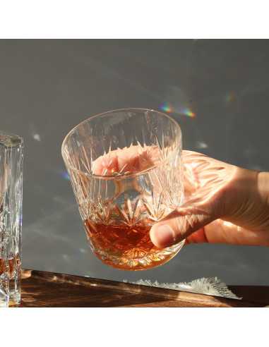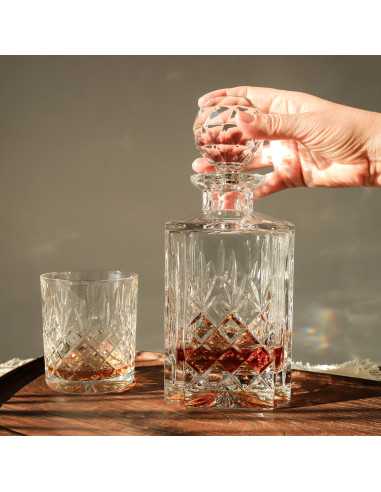 Ekskluzywny komplet karafka i 4 szklanki wykonany z wysokiej jakości szkła kryształowego to propozycja dla osób ceniących klasyczne piękno oraz ponadczasową elegancję. Zestaw doskonale sprawdzi się do whisky czy wody. Całość zapakowana jest w eleganckie czarne opakowanie, idealne także na prezent.Kolekcja Ananas zachwyca prostą, a jednocześnie wyrafinowaną formą. Dzięki uniwersalnemu wzornictwu szklanki świetnie komponują się zarówno z tradycyjnymi, jak i nowoczesnymi szlifami. Pasują do każdej zastawy – od gładkiej ceramiki i jednolitych tekstyliów, po bogato zdobione obrusy i wzorzyste nakrycia.Uwielbiany na całym świecie wzór, inspirowany słodkim owocem, ma wyjątkową historię. Gdy pod koniec XV wieku ananasy dotarły do Europy, były dostępne wyłącznie dla najbogatszych. Przez kolejne stulecia stały się symbolem luksusu i wysokiego statusu społecznego, dlatego ich motyw zdobił naczynia, szkło, meble, a nawet architekturę.Wysokość karafki: 23 cmSzerokość: 10 cmPojemność: 750 mlWysokość szklanki: 9,5 cmŚrednica: 8,5 cmPojemność: 320 ml