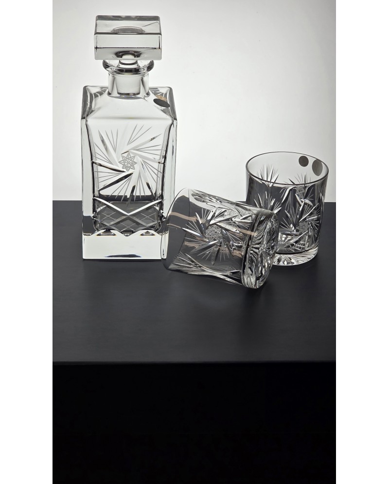 Karafka kryształowa zestaw prezentowy + 2 szklanki szlif Młynek |Elegancki zestaw prezentowy składający się z karafki i dwóch szklanek w klasycznym szlifie młynkowym to kwintesencja tradycji polskiego rzemiosła i ponadczasowego stylu. Każdy element zestawu został wykonany ręcznie przez rzemieślników z Kotliny Kłodzkiej – regionu, który od pokoleń słynie z kunsztu w obróbce szkła kryształowego. Karafka kryształowa o wysokości 21 cm i pojemności 700 ml zachwyca precyzyjnym wykonaniem, a szlify w stylu młynkowym nadają jej klasyczny, elegancki charakter. Zostawiono również wolne pole pod grawer, co pozwala na personalizację – np. dodanie dedykacji, logotypu czy inicjałów, czyniąc z zestawu wyjątkowy, spersonalizowany prezent. Do kompletu dołączone są dwie szklanki o pojemności 320 ml, również w szlifie młynkowym z wolnym polem. Zestaw zapakowany jest w eleganckie opakowanie prezentowe, dzięki czemu stanowi idealny pomysł na prezent dla koneserów whisky, zestaw do barku lub pamiątkę jubileuszową. Każdy element tego kompletu powstał z wysokiej jakości szkła kryształowego, a jego unikalny charakter podkreśla ręczne wykonanie. To produkt w 100% Made in Poland, tworzony z pasją przez firmę Edith.