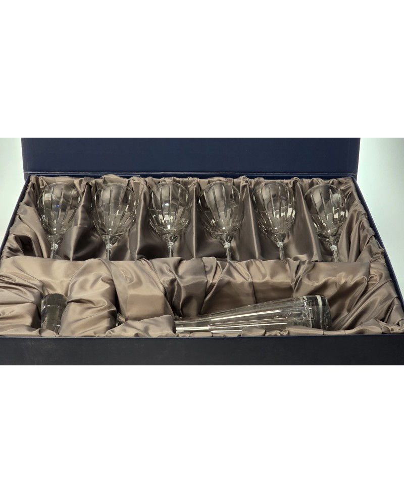 Zawartość zestawu: karafka kryształowa + 6 kieliszków do wina