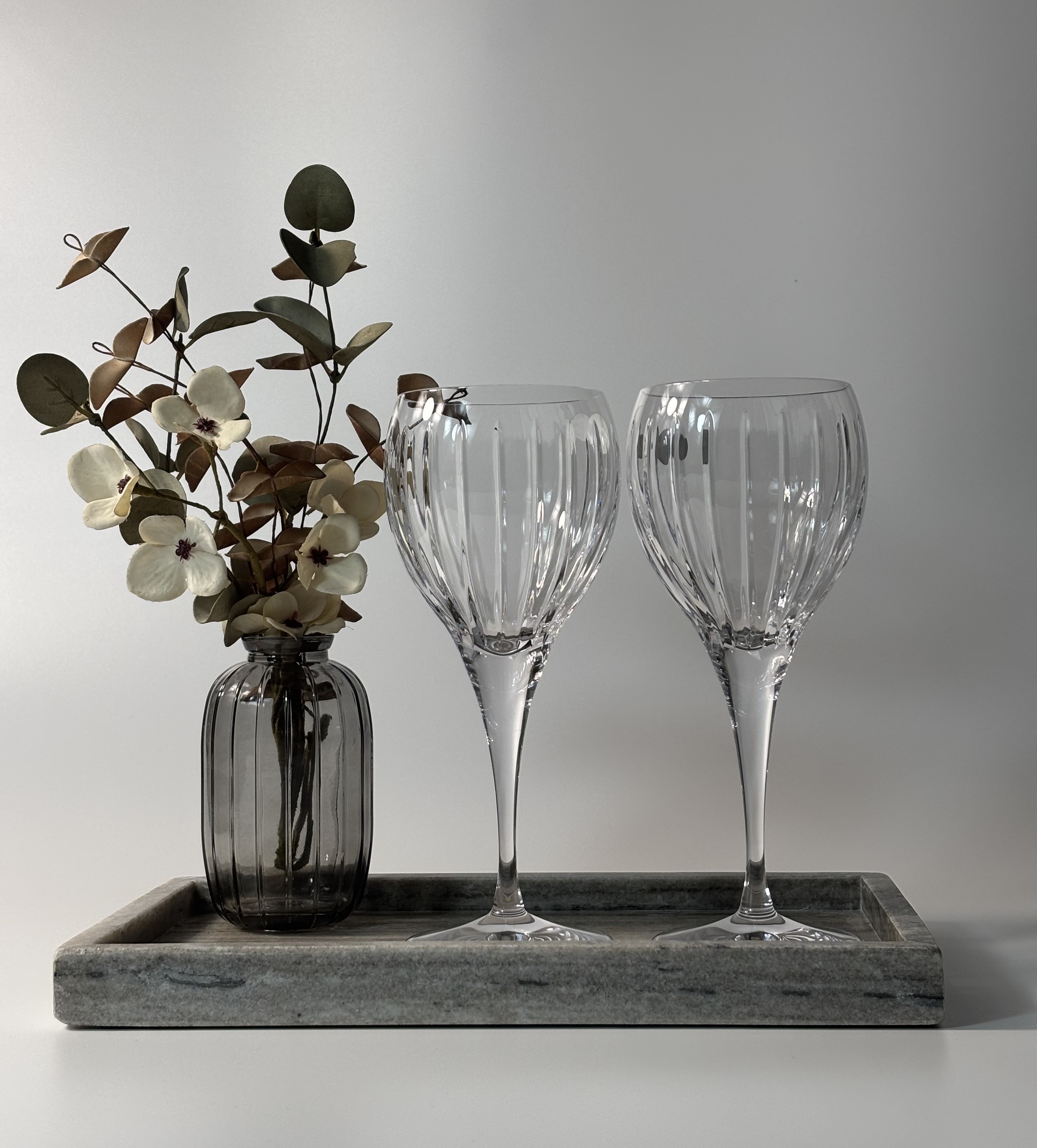 Kieliszki kryształowe do wina Fiona Skyline to połączenie mistrzowskiego rzemiosła i współczesnego designu. Wykonany z wysokiej jakości szkła kryształowego 24% PbO, zachwyca swoją przejrzystością, lekkością oraz charakterystycznym pionowym szlifem, który odbija światło, tworząc efekt subtelnej gry refleksów. To wyjątkowy kieliszek, który podkreśli elegancję każdego stołu – zarówno podczas romantycznej kolacji, jak i uroczystego przyjęcia.