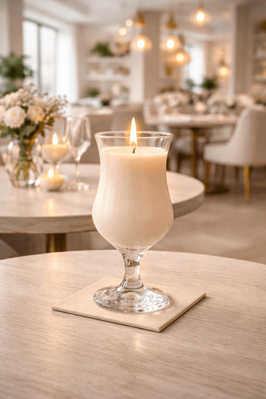 Świeca na stół do restauracji sprawdzi się zarówno w eleganckich restauracjach, jak i nowoczesnych kawiarniach.