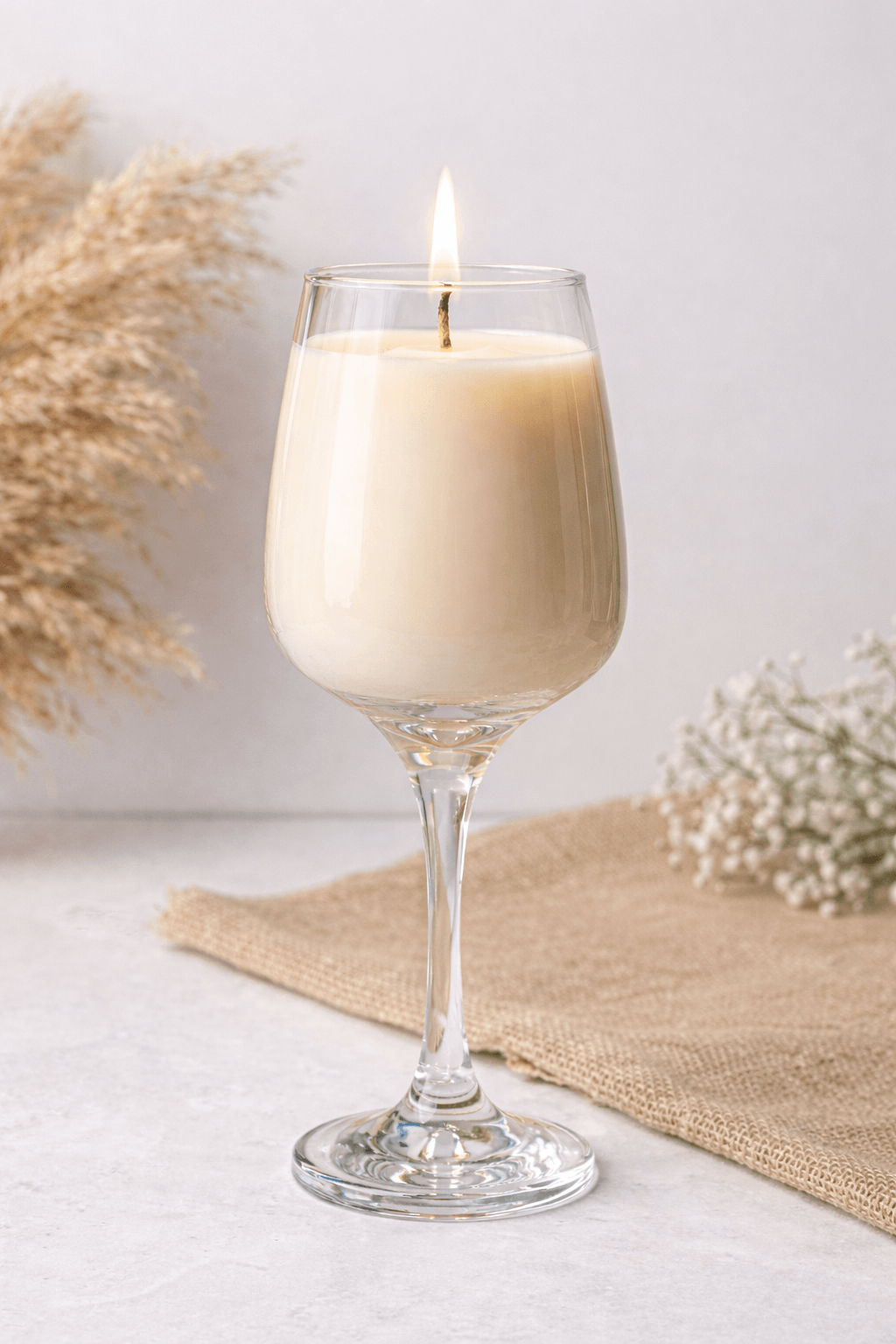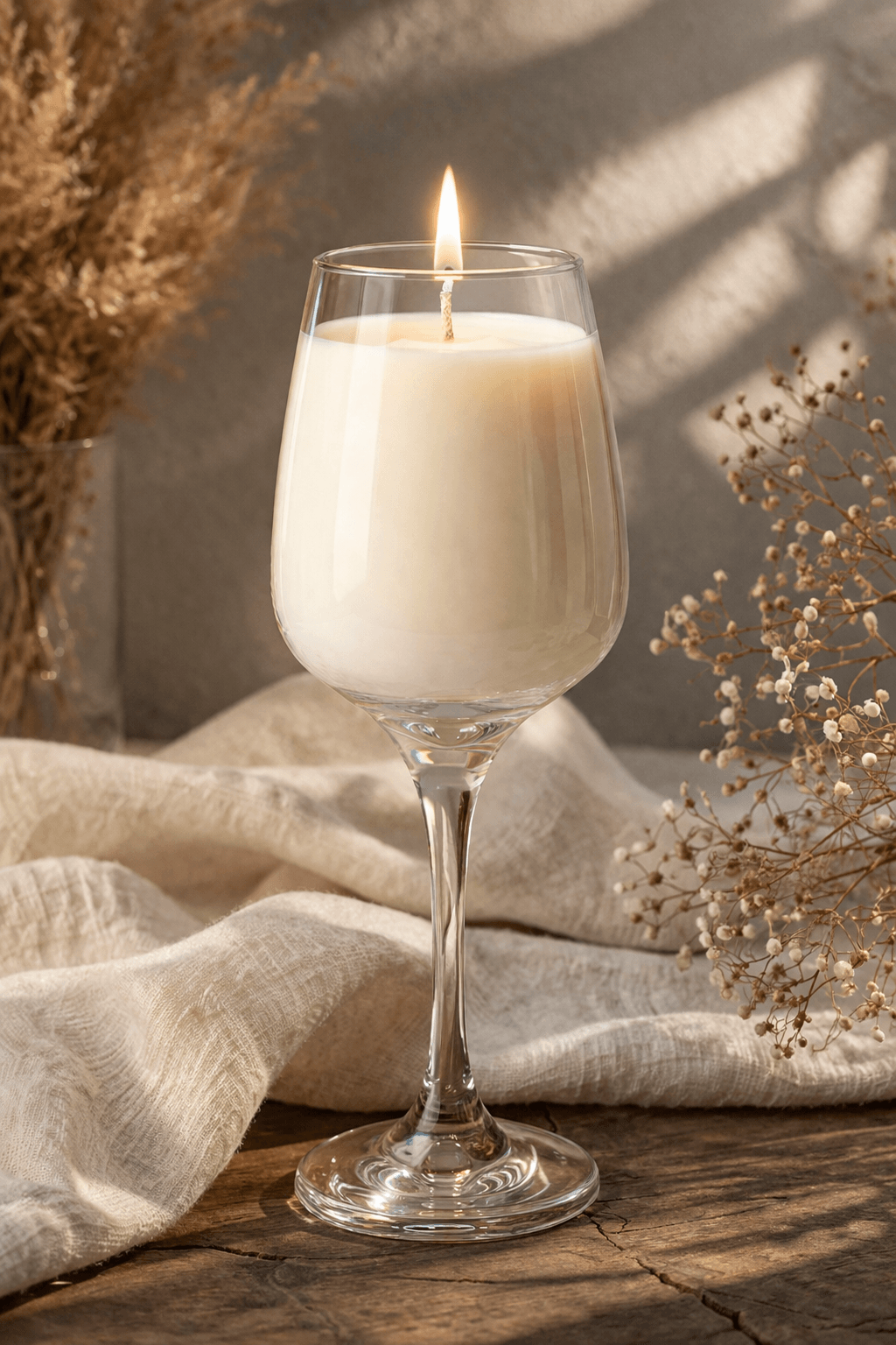 Wykonana z wysokiej jakości wosku sojowego, z naturalnym bawełnianym knotem, zapewnia czyste, równomierne spalanie i przyjemne, ciepłe światło. Transparentny kieliszek podkreśla elegancję formy i sprawia, że świeca doskonale wpisuje się zarówno w nowoczesne, jak i klasyczne wnętrza.