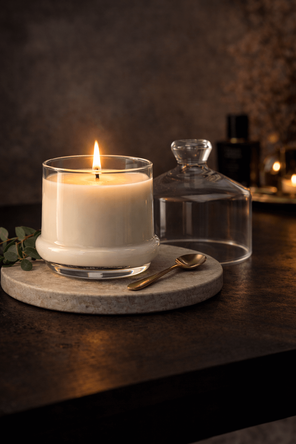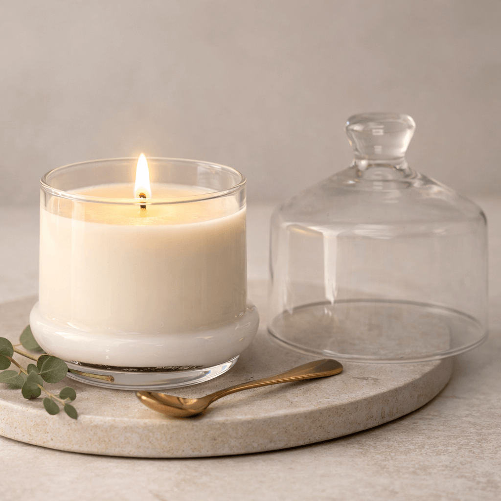 Minimalistyczna forma szkła oraz subtelny kolor wosku sprawiają, że świeca idealnie wpisuje się w styl nowoczesnych, klasycznych oraz skandynawskich wnętrz. Dzięki zdejmowanej pokrywce naczynie chroni świecę przed kurzem, a jednocześnie nadaje jej wyjątkowo dekoracyjny charakter.