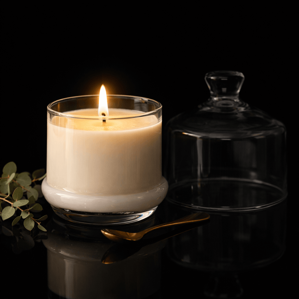 Świecę zapalaj wyłącznie w otwartym naczyniu – przed zapaleniem zdejmij szklaną pokrywkę.