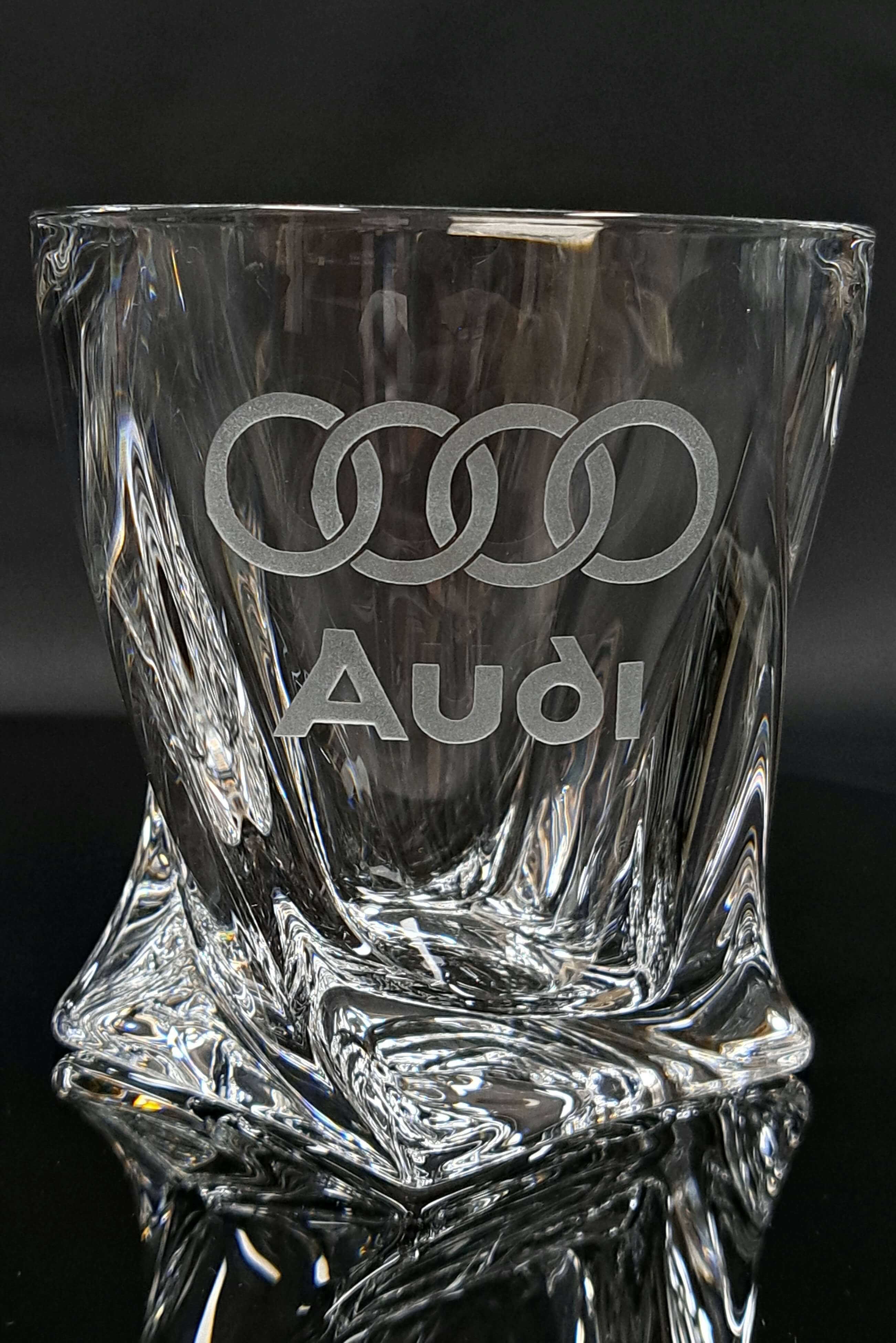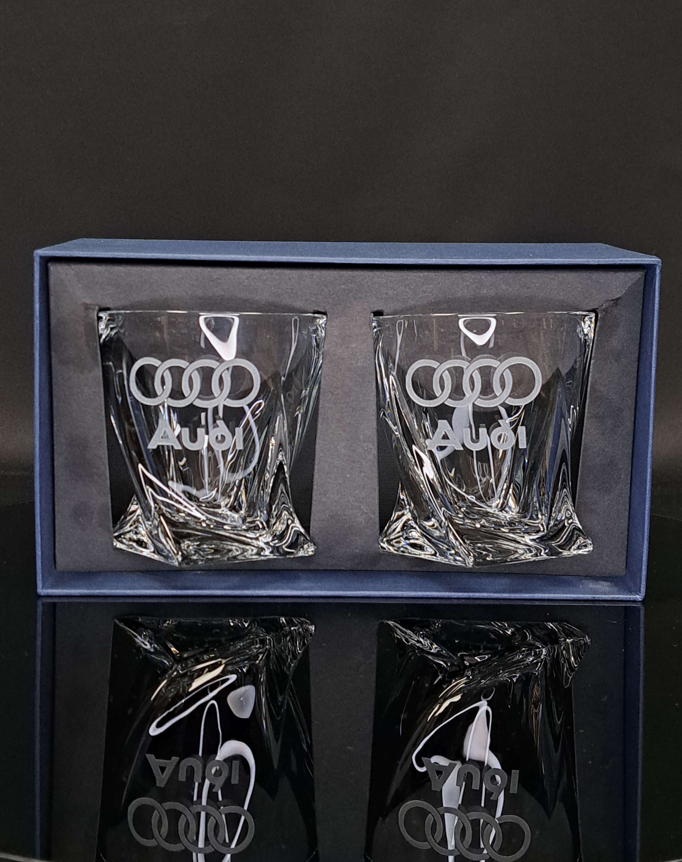 Zestaw szklanek do whisky z grawerem logo Audi to połączenie luksusowego szkła kryształowego, precyzyjnego wykonania oraz wyrazistego designu inspirowanego światem motoryzacji premium. To propozycja dla osób, które cenią styl, jakość i detale, a jednocześnie chcą podkreślić swoją pasję do marki Audi w elegancki, nienachalny sposób.