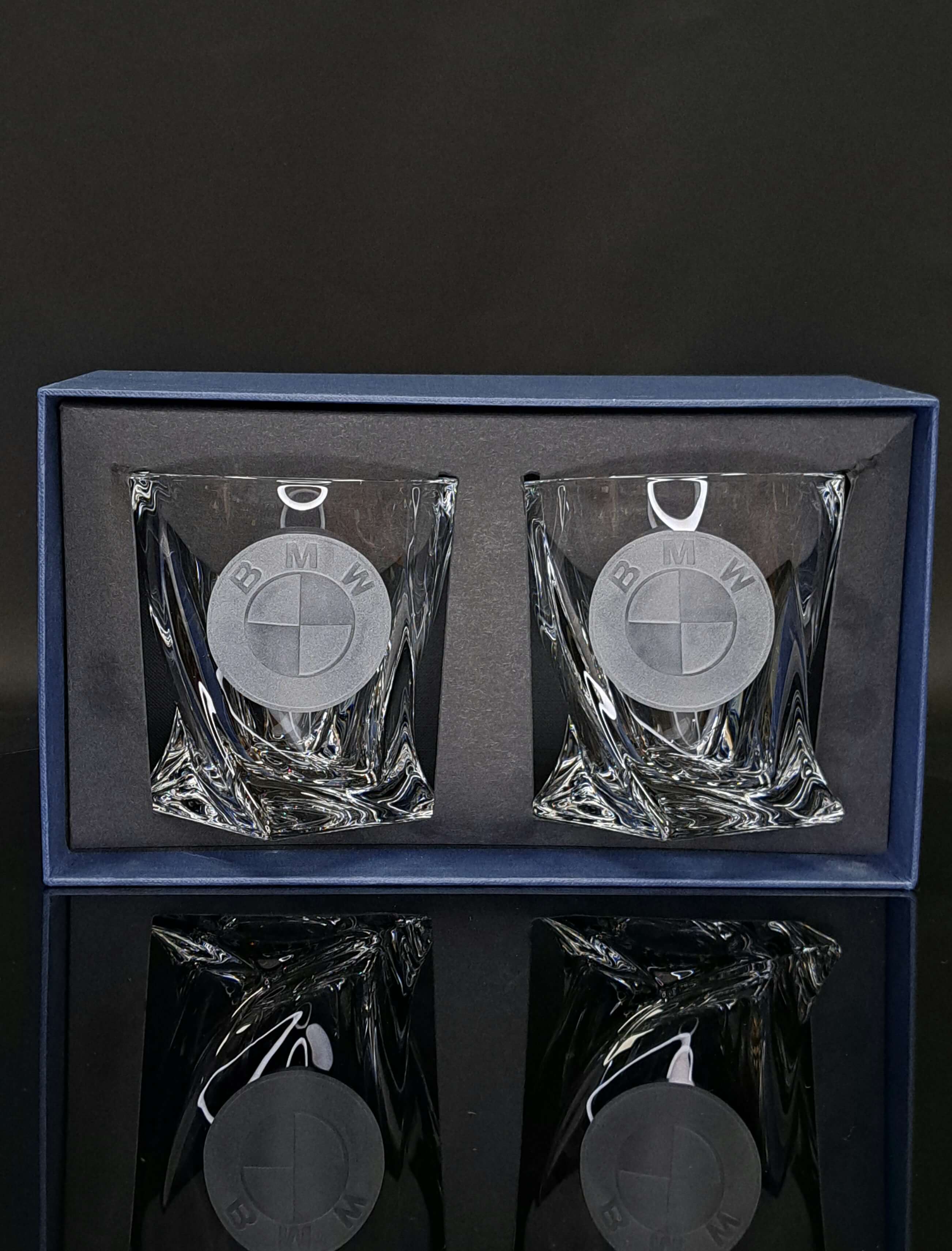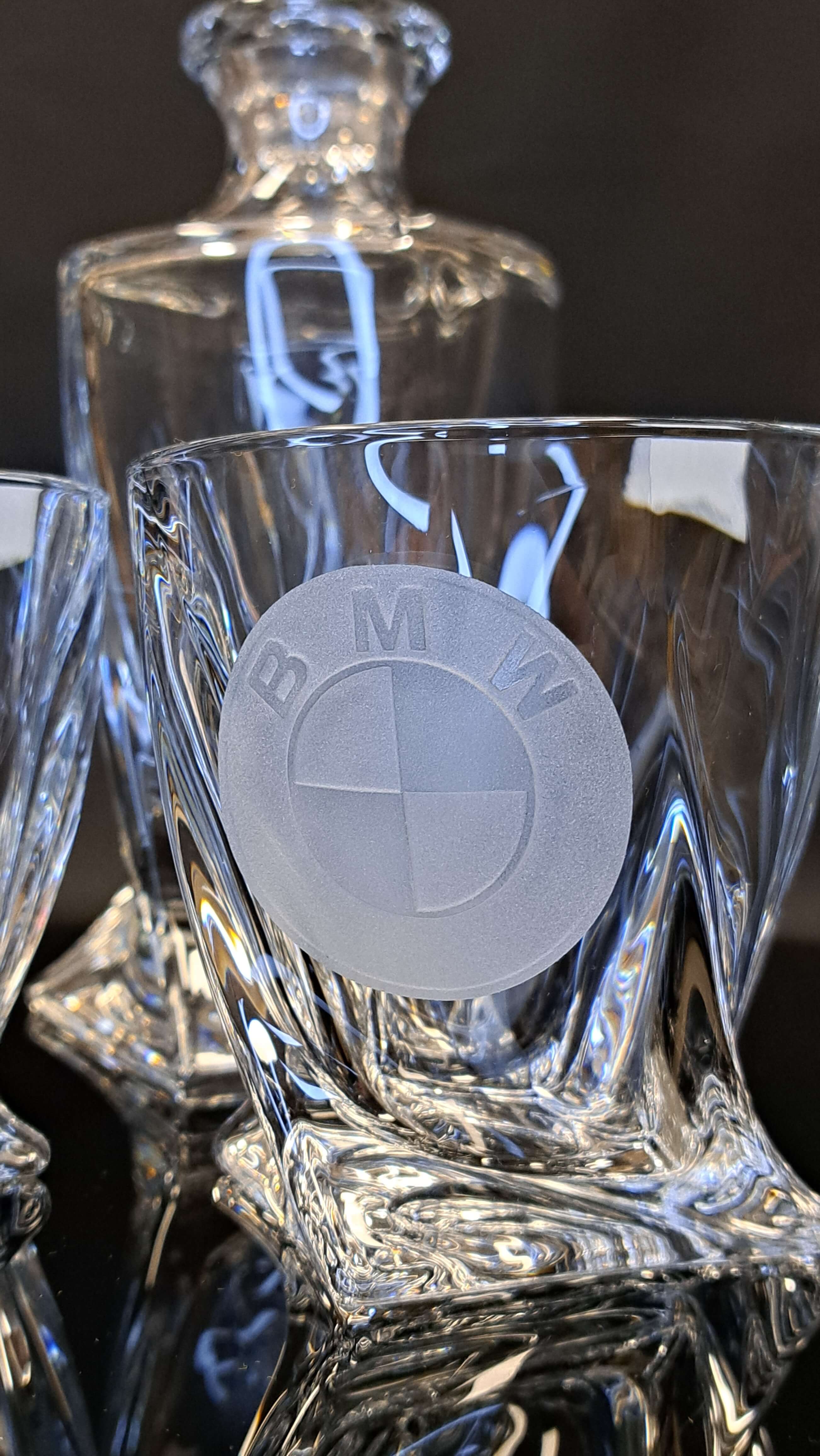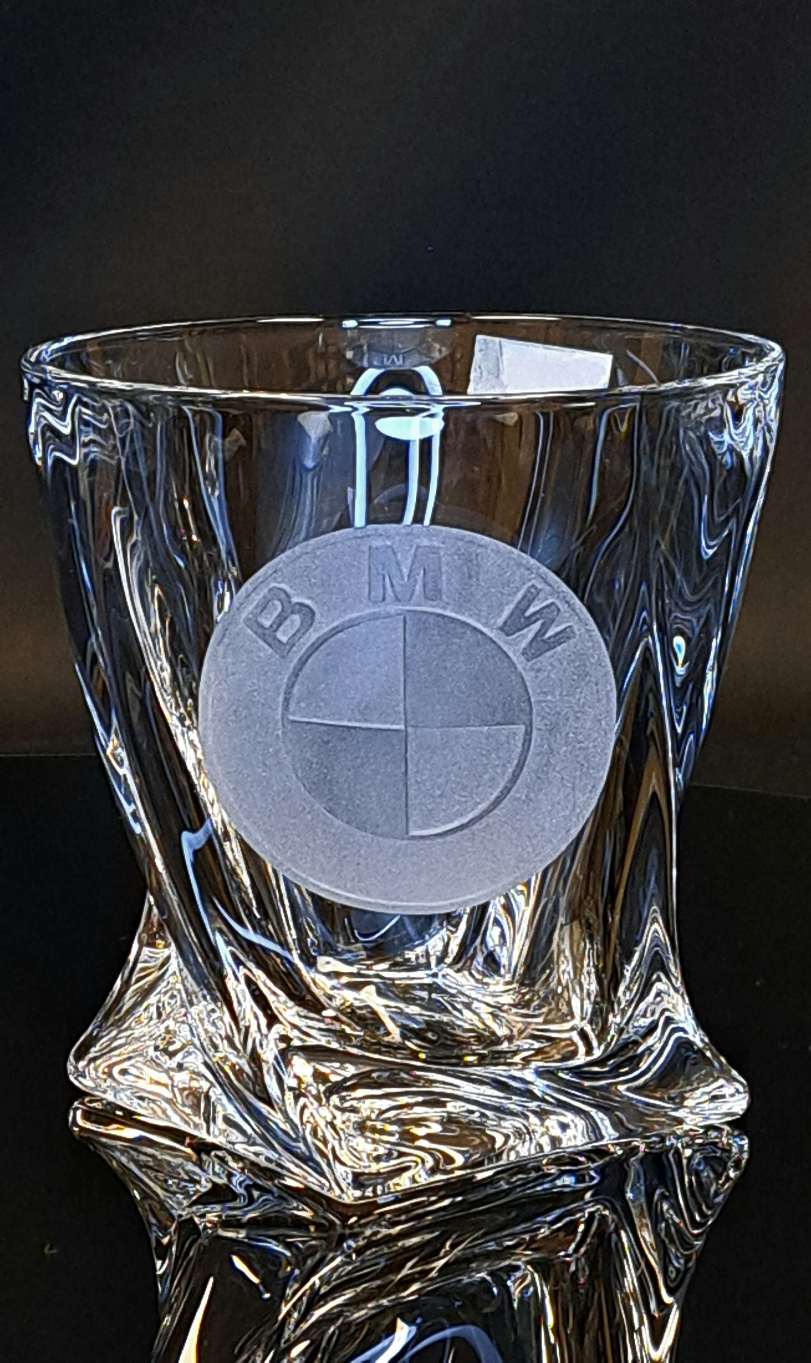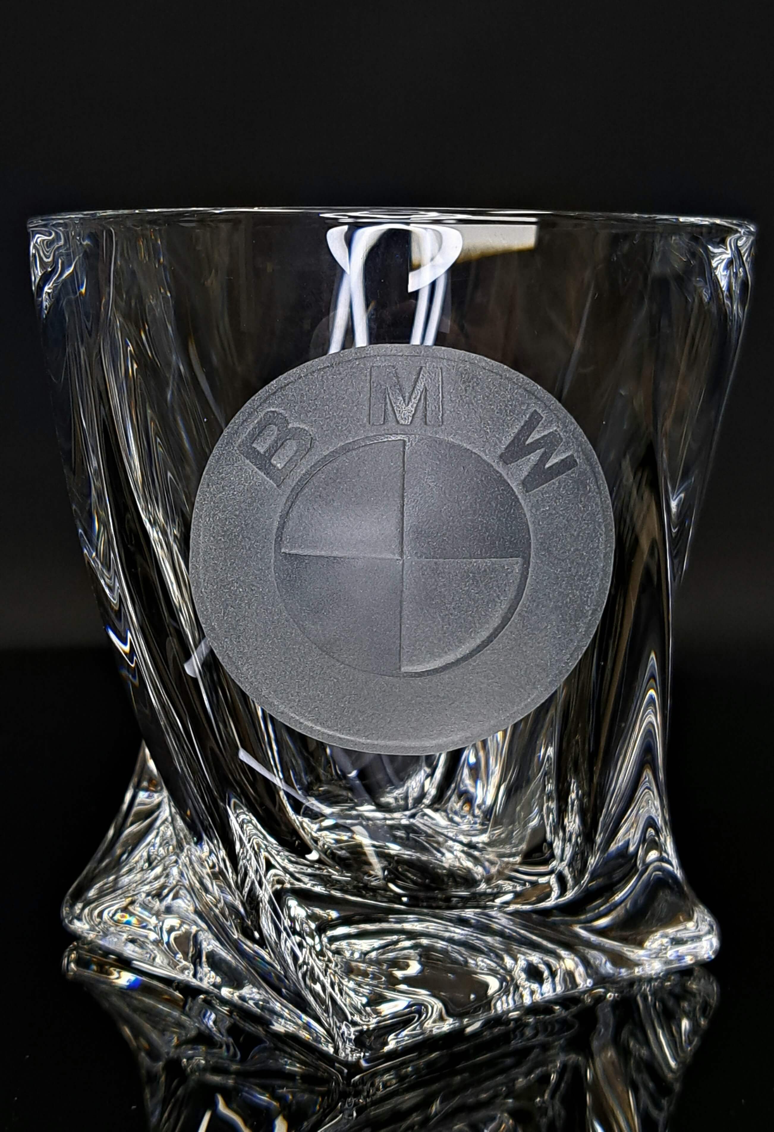 Logo BMW zostało wykonane ręcznie metodą grawerowania, co gwarantuje trwałość wzoru oraz estetyczny, matowy efekt widoczny na tle idealnie gładkiej powierzchni szkła.