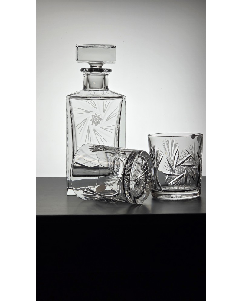 Zestaw prezentowy karafka + 2 szklanki | Szlif Młynek | Producent: Edith | Ręczna praca | Made in Poland Elegancki zestaw prezentowy składający się z karafki i dwóch szklanek w klasycznym szlifie młynkowym to kwintesencja tradycji polskiego rzemiosła i ponadczasowego stylu. Każdy element zestawu został wykonany ręcznie przez rzemieślników z Kotliny Kłodzkiej – regionu, który od pokoleń słynie z kunsztu w obróbce szkła kryształowego. Karafka o wysokości 21 cm i pojemności 700 ml zachwyca precyzyjnym wykonaniem, a szlify w stylu młynkowym nadają jej klasyczny, elegancki charakter. Zostawiono również wolne pole pod grawer, co pozwala na personalizację – np. dodanie dedykacji, logotypu czy inicjałów, czyniąc z zestawu wyjątkowy, spersonalizowany prezent. Do kompletu dołączone są dwie szklanki o pojemności 320 ml, również w szlifie młynkowym z wolnym polem. Zestaw zapakowany jest w eleganckie opakowanie prezentowe, dzięki czemu stanowi idealny pomysł na prezent dla koneserów whisky, zestaw do barku lub pamiątkę jubileuszową. Każdy element tego kompletu powstał z wysokiej jakości szkła kryształowego, a jego unikalny charakter podkreśla ręczne wykonanie. To produkt w 100% Made in Poland, tworzony z pasją przez firmę Edith. Parametry produktu: Producent: Edith (Polska) Linia: Młynek Materiał: szkło kryształowe Wykonanie: ręczna praca Zawartość zestawu: karafka + 2 szklanki Wysokość karafki: 21 cm Szerokość karafki: 10 cm Pojemność karafki: 700 ml Wysokość szklanki: 9,5 cm Średnica szklanki: 8,5 cm Pojemność szklanki: 320 ml Kraj pochodzenia: Polska (Made in Poland) Stan: nowy, bez uszkodzeń Opakowanie: ozdobne pudełko prezentowe Dlaczego warto?✔️ Wykonane ręcznie przez polskich rzemieślników z Kotliny Kłodzkiej✔️ Klasyczny szlif Młynek z wolnym polem pod grawer✔️ Oryginalny produkt marki Edith✔️ Wykonane ze szkła kryształowego najwyższej jakości✔️ Zestaw w eleganckim opakowaniu prezentowym✔️ Doskonały pomysł na prezent lub element domowego barku